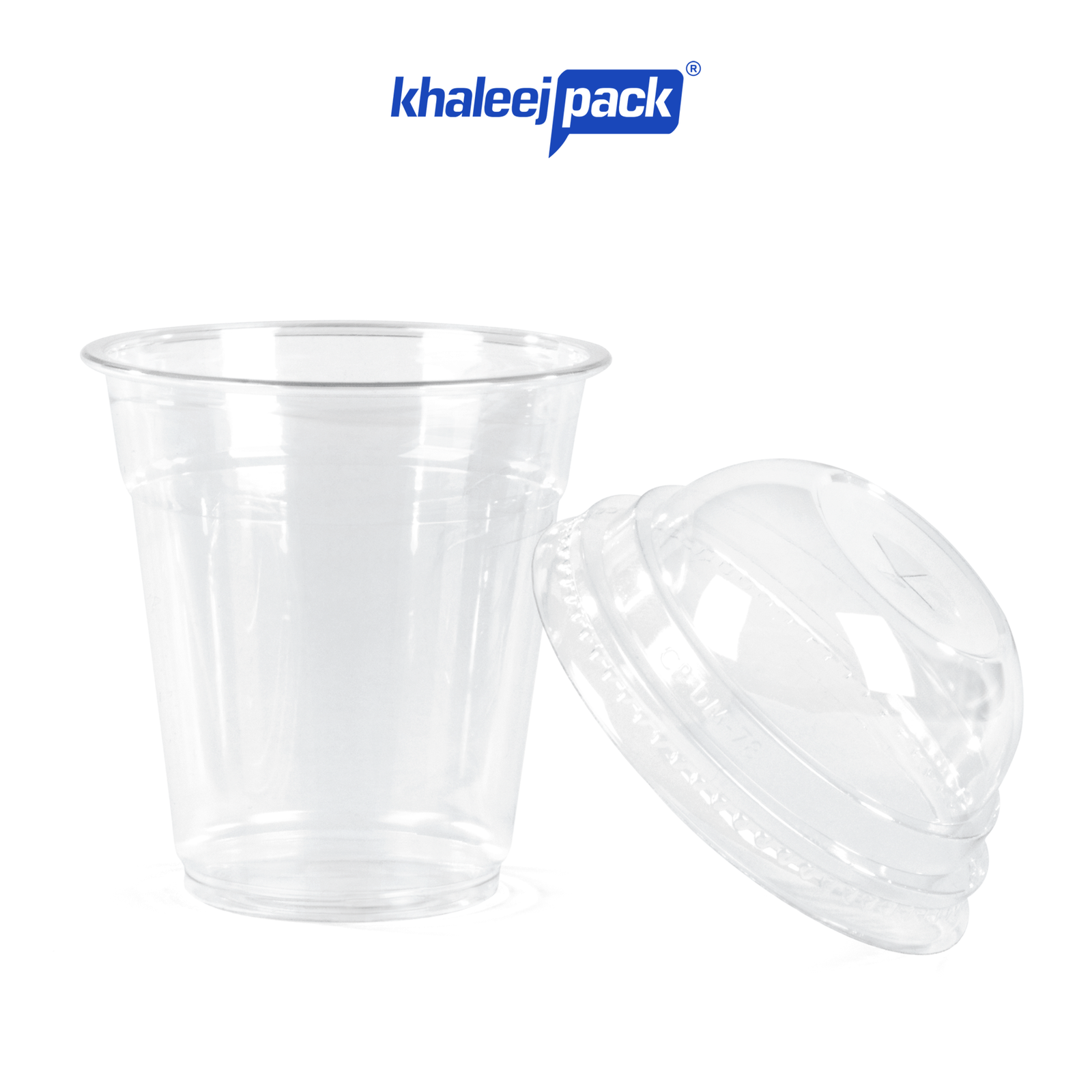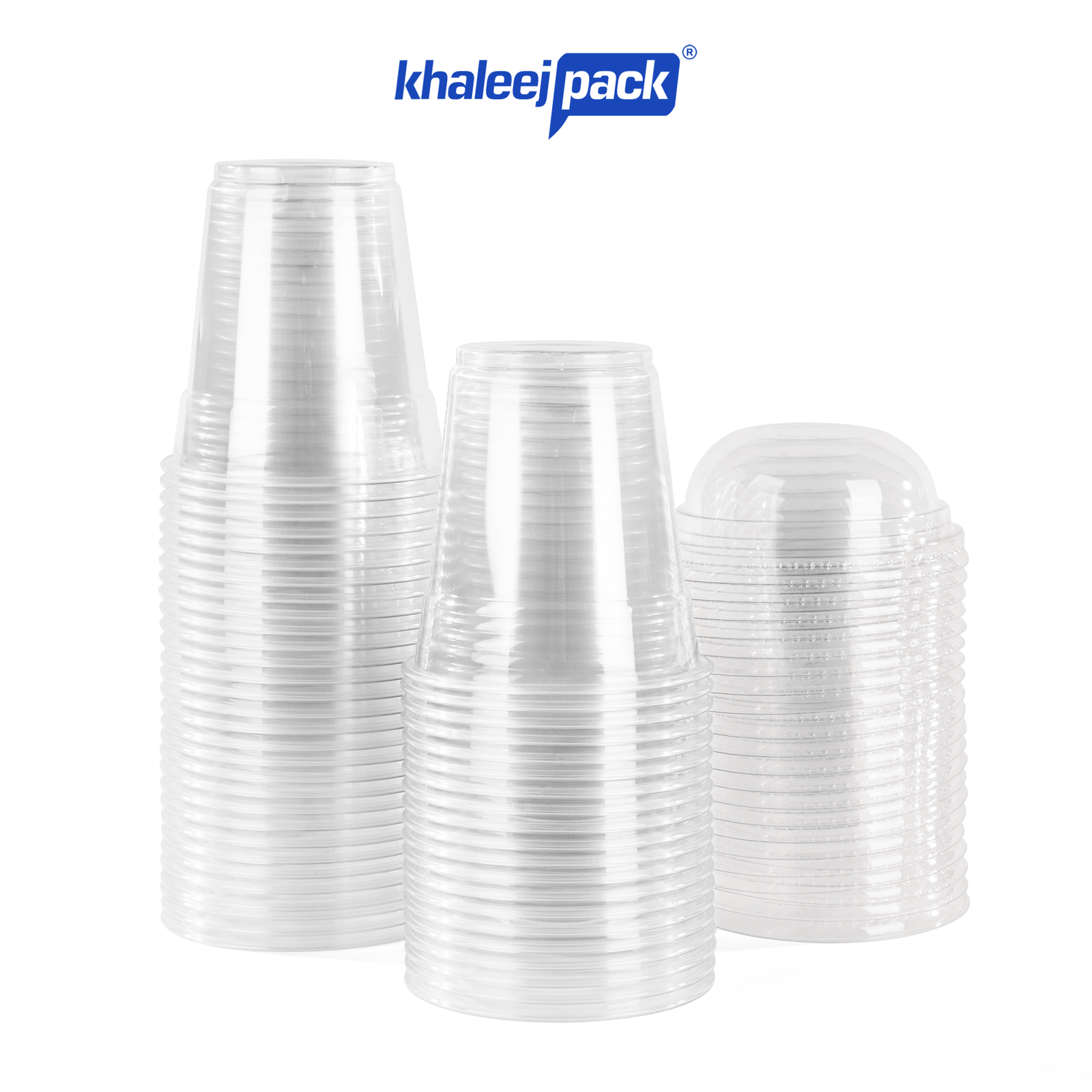 Plastic Cups With Dome Lids ? 25 Cups 8oz Clear Plastic Cups Milkshake Cups With Dome Lids with Tight Lid Grip PET Crystal Clear BPA Free Smoothie Cups Khaleej Pack