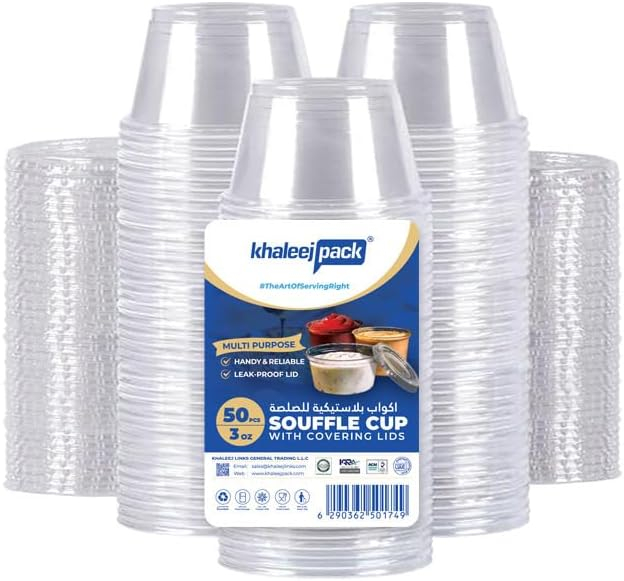 Premium 3 oz sauce cups with secure lids, pack of 50, perfect for serving dressings, dips, and condiments with convenience and style.